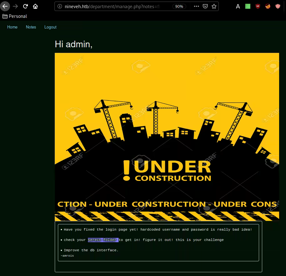 Let's see if we can enumerate port 80 a little further using the domain name nineveh.htb, but this time using gobuster :