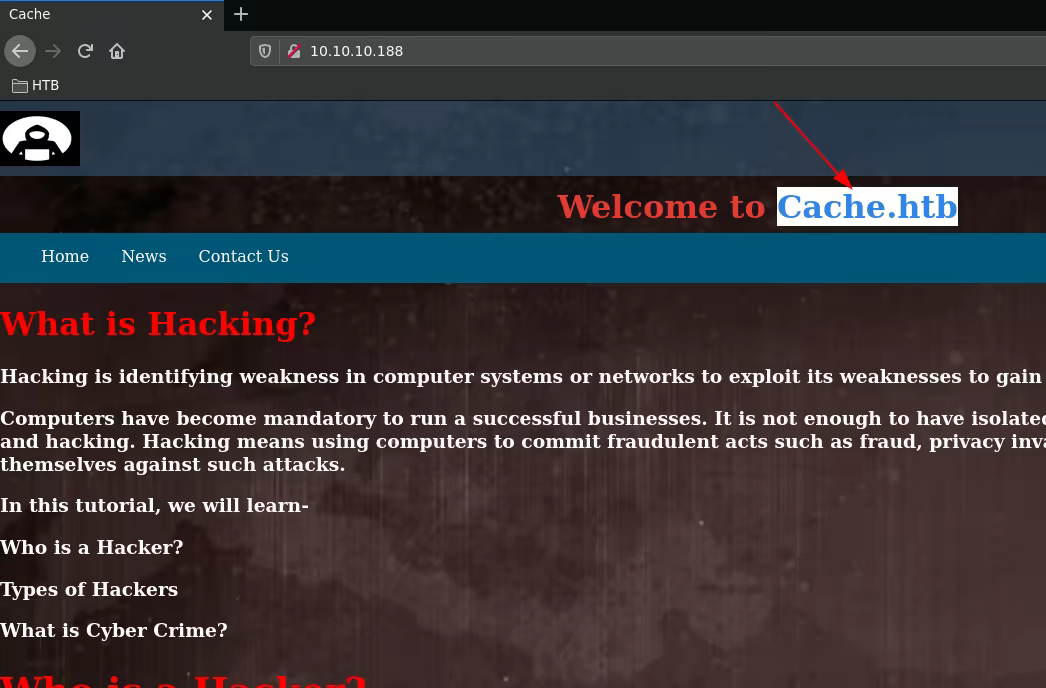ββ# echo '10.10.10.188 cache.htb' >> /etc/hosts