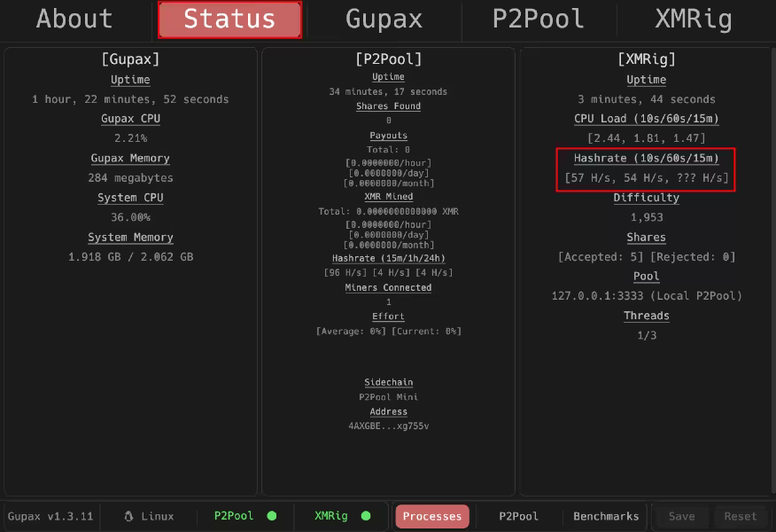 Next step is to mine Monero using gupax on the clientside, or xmrig on the serverside: