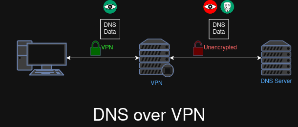DNS over VPN is the act of routing your DNS queries over a VPN, This has about the same advantages and disadvantages as DNS over Tor (provided that the benefit of anonymity is dependent on the VPN you're using). For the sake of the ratings table below, we'll be referring to both DNS over Tor and DNS over VPN as DNS over Tor/VPN.