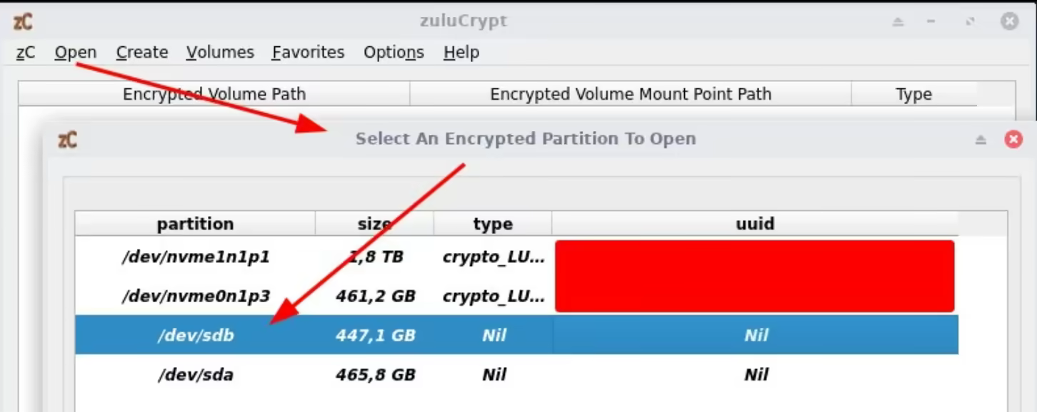 sudo zuluCrypt-cli -q -d /dev/sdb