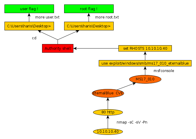 Our nmap scan result picked up a combination of smb and Windows 7 SP1 7601 , this may ring a bell with the leaked NSA tool called "EternalBlue", which takes advantage of the vulnerability affecting SMBv1 which is now known to mishandle special packets from attackers, this CVE has been fixed with the MS17-010 patch. Let's see if it works on this box.