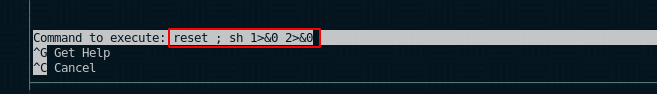 Here we see that we can execute a command using CTRL+X, so we're going to get a shell using the following: