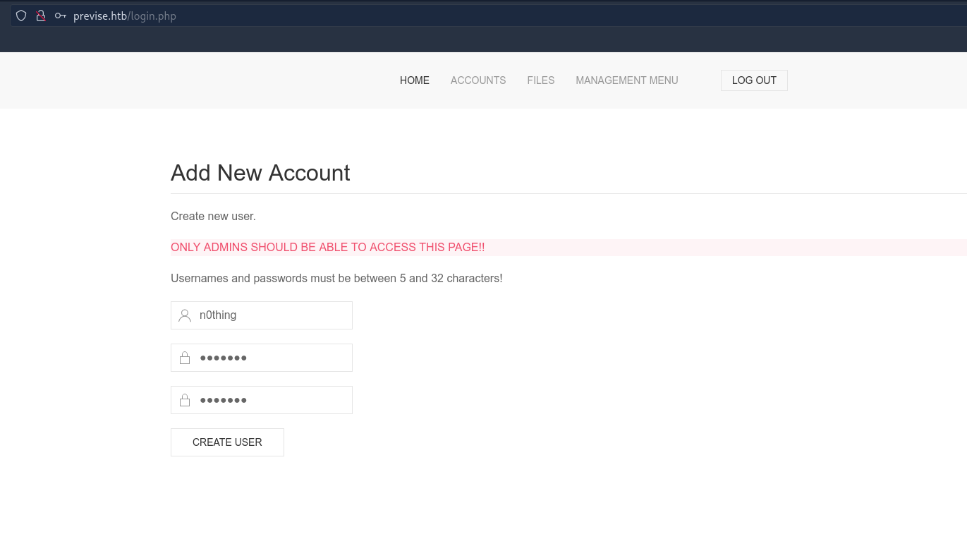 /css (Status: 301) [Size: 308] [--> http://previse.htb/css/]