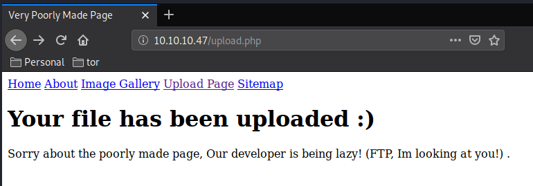 When we upload any file there we get redirected to /uploads.php: