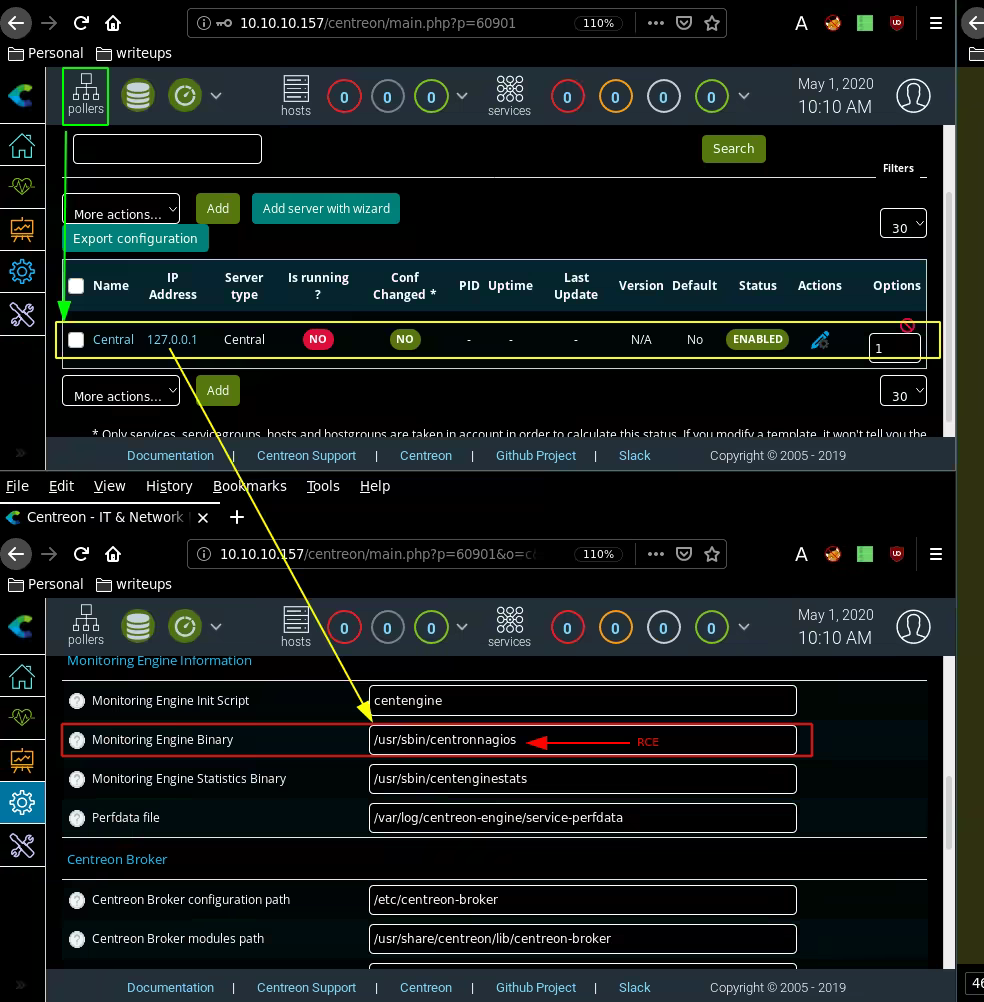 Centreon 19.10.5 - 'Pollers' Remote Command Execution | exploits/php/webapps/47977.txt