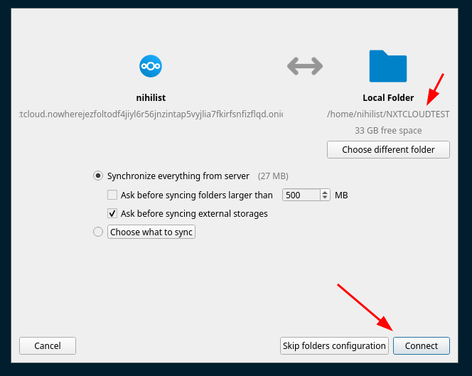 Once you have granted access, you can start to sync your nextcloud instance files locally: