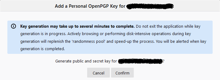 12. Klik Confirm og vent et øjeblik mens dine krypteringsnøgler bliver genereret.