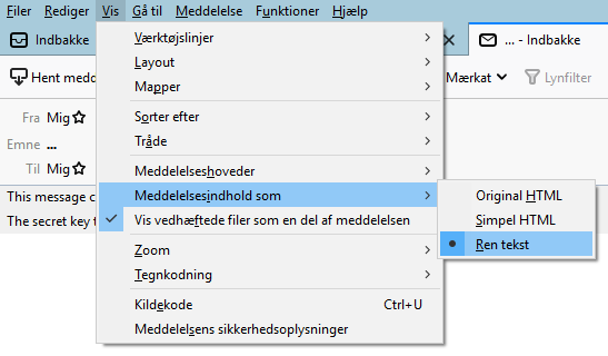 7. Tryk Vis–>Meddelelsesindhold som–>Ren tekst.