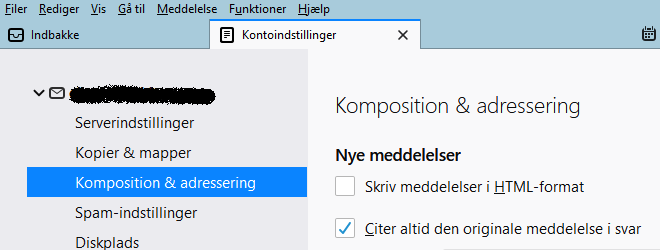 8. Gå til Funktioner–>Kontoindstillinger–>Komposition & adressering.