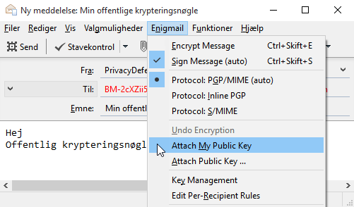 Derved sendes din e-mail ukrypteret, hvilket er nødvendigt indtil krypteringsnøglerne er udvekslet.