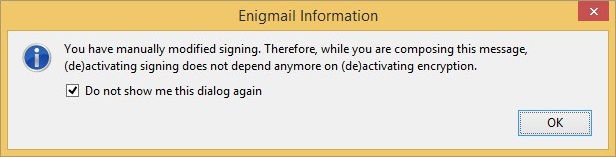 GnuPG gør dig ikke kun i stand til at udveksle krypterede e-mails. Det giver også en garanti for, at indholdet i e-mails ikke er blevet ændret undervejs, samt hvem du reelt skriver med. Første gang du modtager en offentlig krypteringsnøgle, bør du som tidligere nævnt sikre dig, hvem du reelt har modtaget den fra. Herefter vil du, udover krypteringen, benytte noget der kaldes en signatur. Man taler om at signerer sine e-mails, eller at e-mailen er signeret. Det er en garanti for, at afsenderen er hvem han udgiver sig for. Så længe dine venner holder deres private krypteringsnøgle hemmelig, kan du nu være sikker på, at de e-mails du får fra dem, rent faktisk er fra dem.