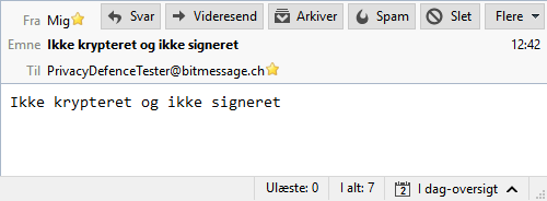 Denne e-mail er hverken krypteret eller signeret. Den kan derfor være blevet læst af uvedkommende, der er ingen garanti for hvem den reelt er fra, og den kan desuden være blevet ændret undervejs. Altså en ganske almindelig e-mail.