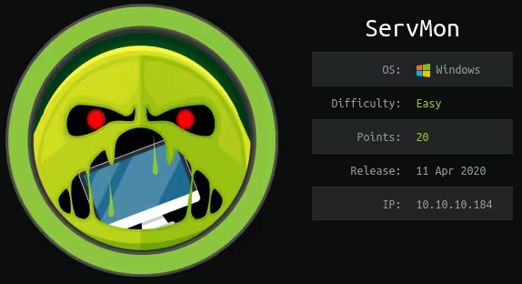 ServMon is an easy Windows box released back in April 2020.