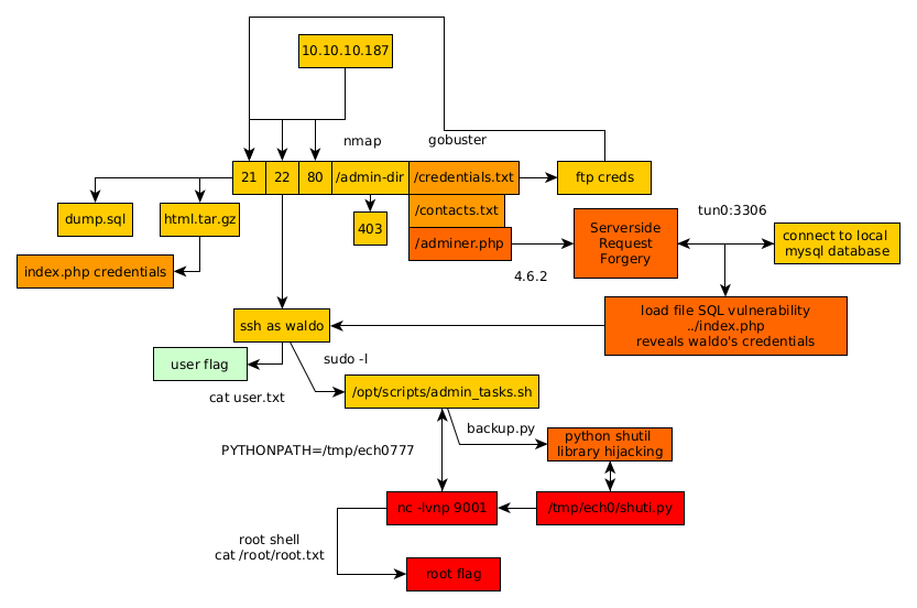 waldo@admirer:~$ sudo PYTHONPATH=/tmp/nihilist777 /opt/scripts/admin_tasks.sh