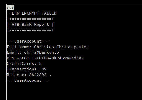 We now have credentials to work with : chris@bank.htb : !##HTBB4nkP4ssw0rd!## We will try them onto the login page that our nmap scan picked up before.