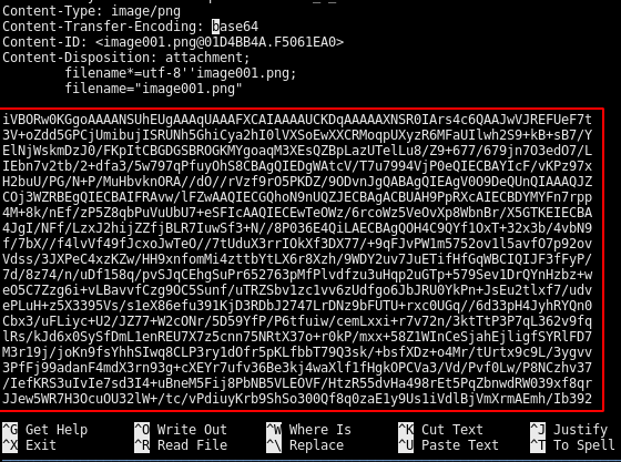 In the drafts folder we have an interesting email with a b64 encoded attached image: