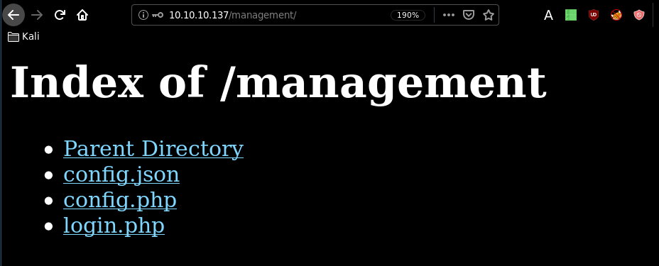 [09:05:02] 403 - 217B - /.htusers**[09:05:25] 200 - 202B - /config.php**