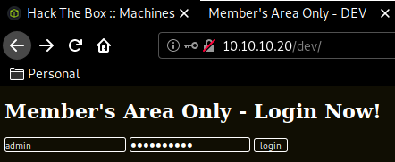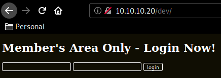 [14:13:32] 301 - 307B - /dev -> http://10.10.10.20/dev/