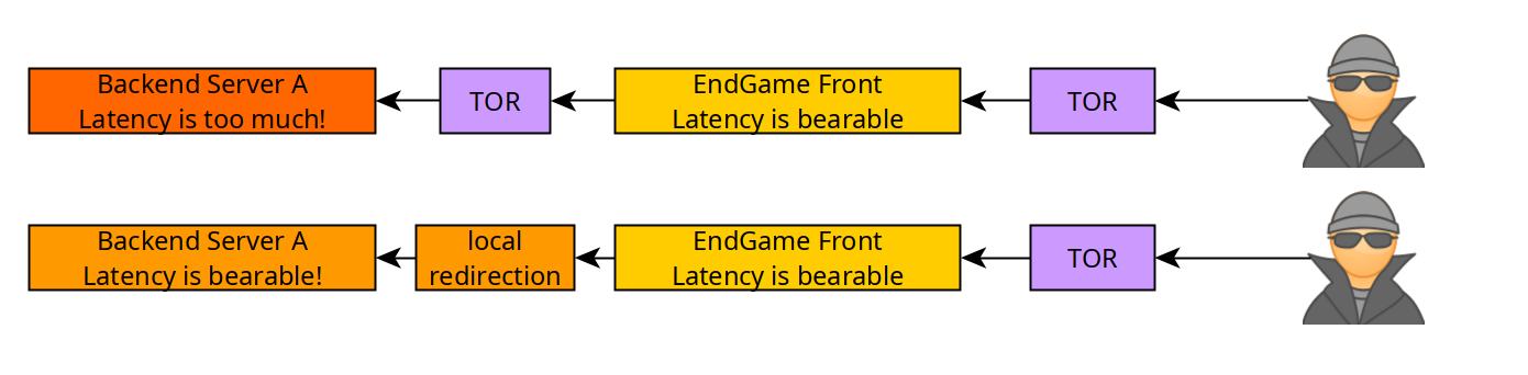 Now we'll first cover how to have a single Endgame V3 front, to redirect to 2 onion backends, but keep in mind that there is very high latency involved here. The ideal setup as we'll see later, is to have local redirection behind the Endgame front. And we'll also make use of the onionbalance technology to setup multiple Endgame fronts for the same Master Onion!