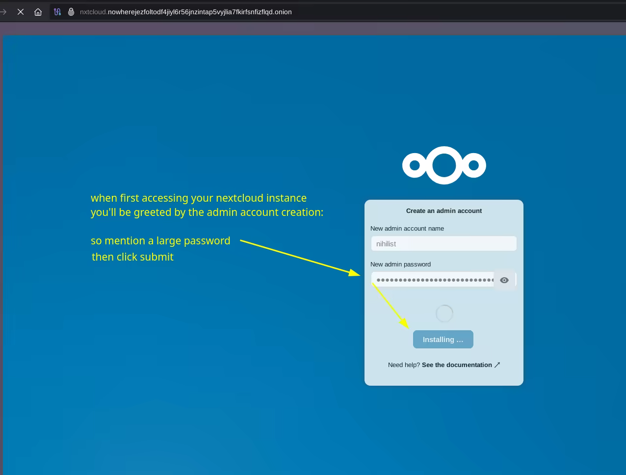 then you can proceed with accessing your nextcloud instance: