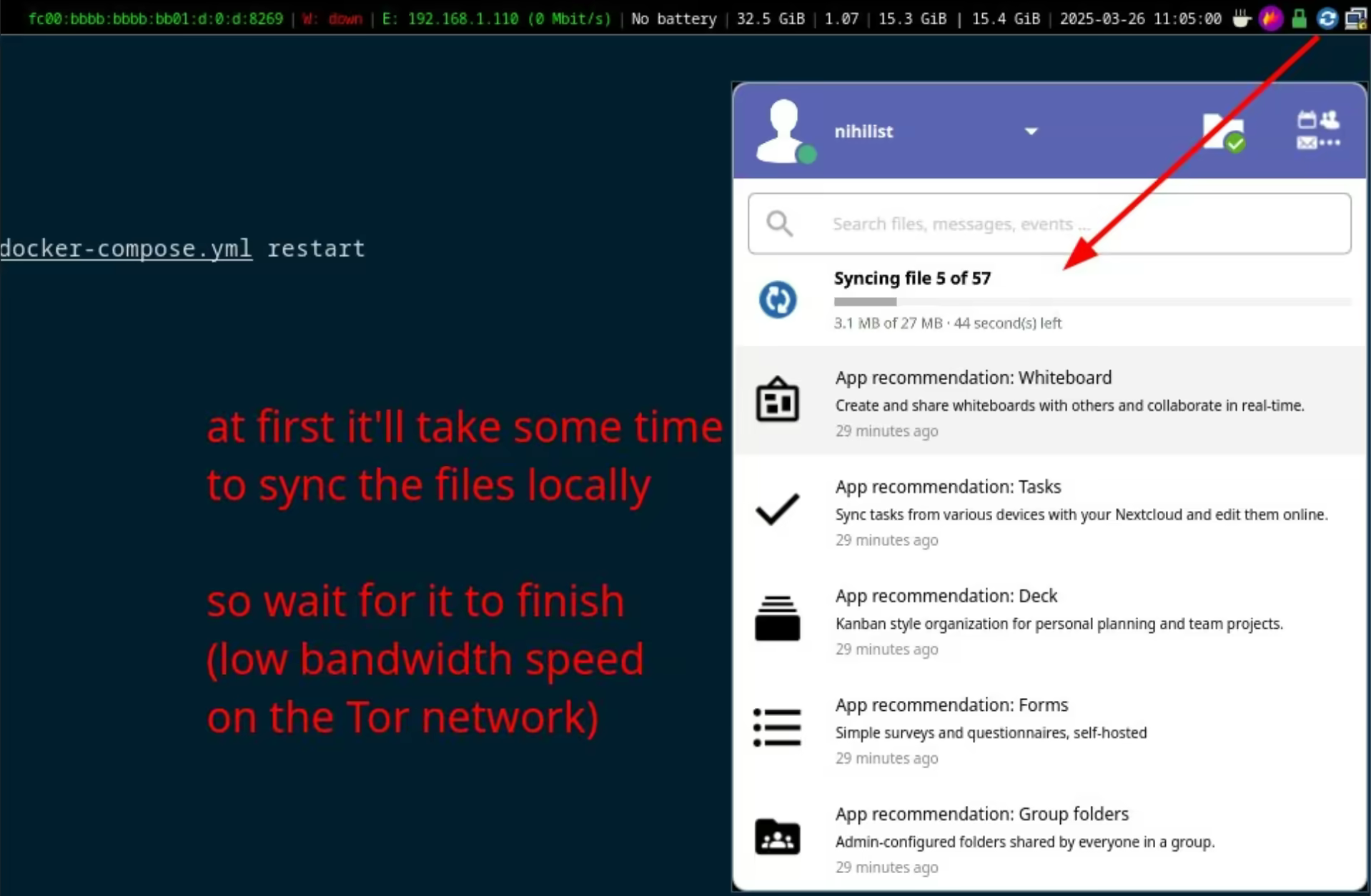 In this tutorial we're going to cover how you can install an .onion only Nextcloud instance, Nextcloud is a FOSS alternative to replace popular file hosting websites like google cloud or onedrive, which can be ideal to make sure that your files are backed up somewhere, all while preserving anonymity. I recommend self-hosting this service at home, that way you make sure that your personal data stays at your home, rather than making it readable by an adversary on a remote server.